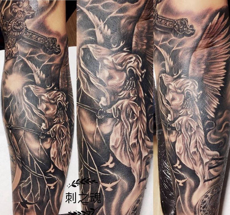 当前位置: 首页 >天津市纹身店-刺之魂艺术纹身纹身图案>死神纹身图片_手臂欧美原创纹身图案
