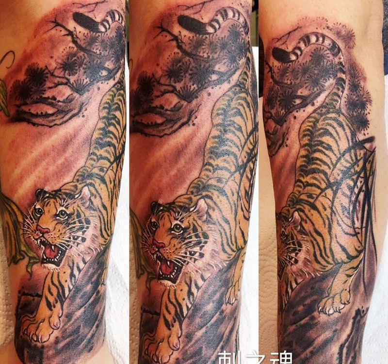 当前位置: 首页 >天津市纹身店-刺之魂艺术纹身纹身图案>写意老虎纹身图片_