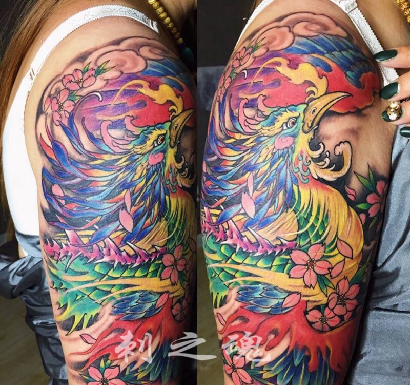 当前位置: 首页 >天津市纹身店-刺之魂艺术纹身纹身图案>凤凰纹身图片_成品手臂传统动物纹身图案