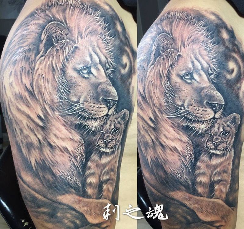 当前位置: 首页 >天津市纹身店-刺之魂艺术纹身纹身图案>狮子纹身图片_成品手臂欧美写实动物原创纹身图案