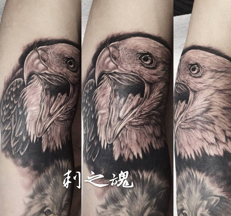 当前位置: 首页 >天津市纹身店-刺之魂艺术纹身纹身图案>鹰的眼睛纹身图片_成品手臂欧美写实动物原创纹身图案