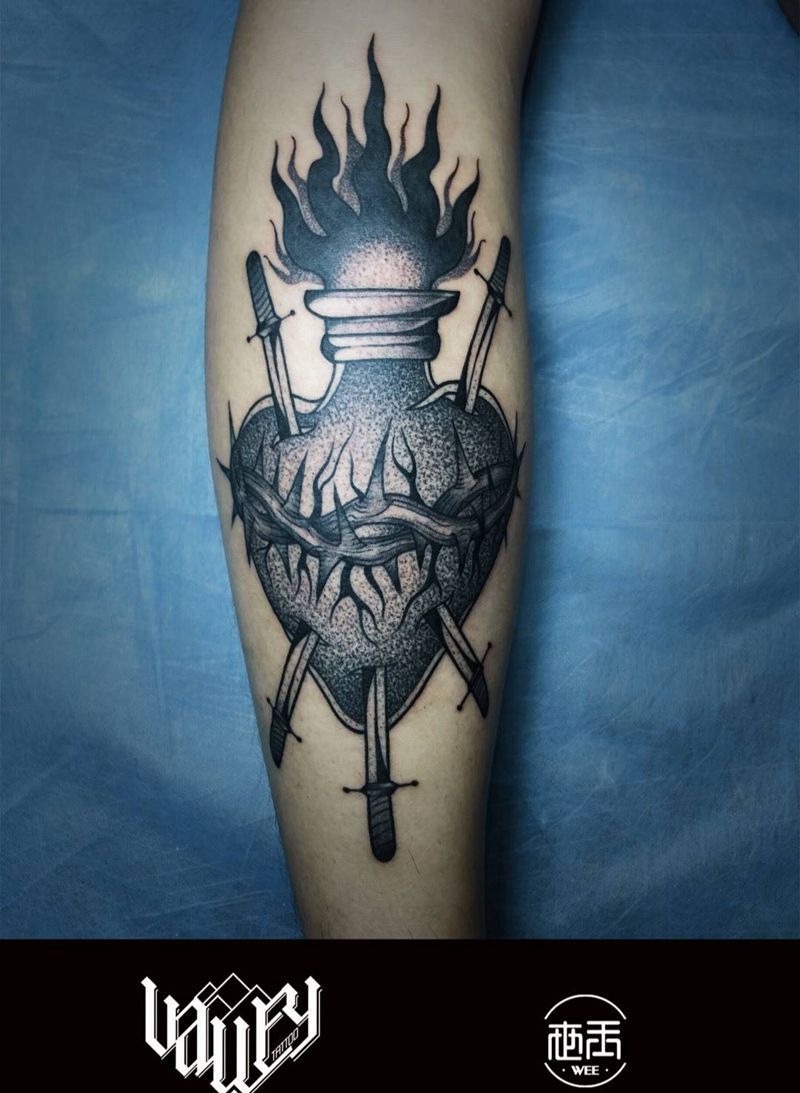 • T包小腿吹火男+阿多福纹身图片_腿部老传统新传统吹火男阿