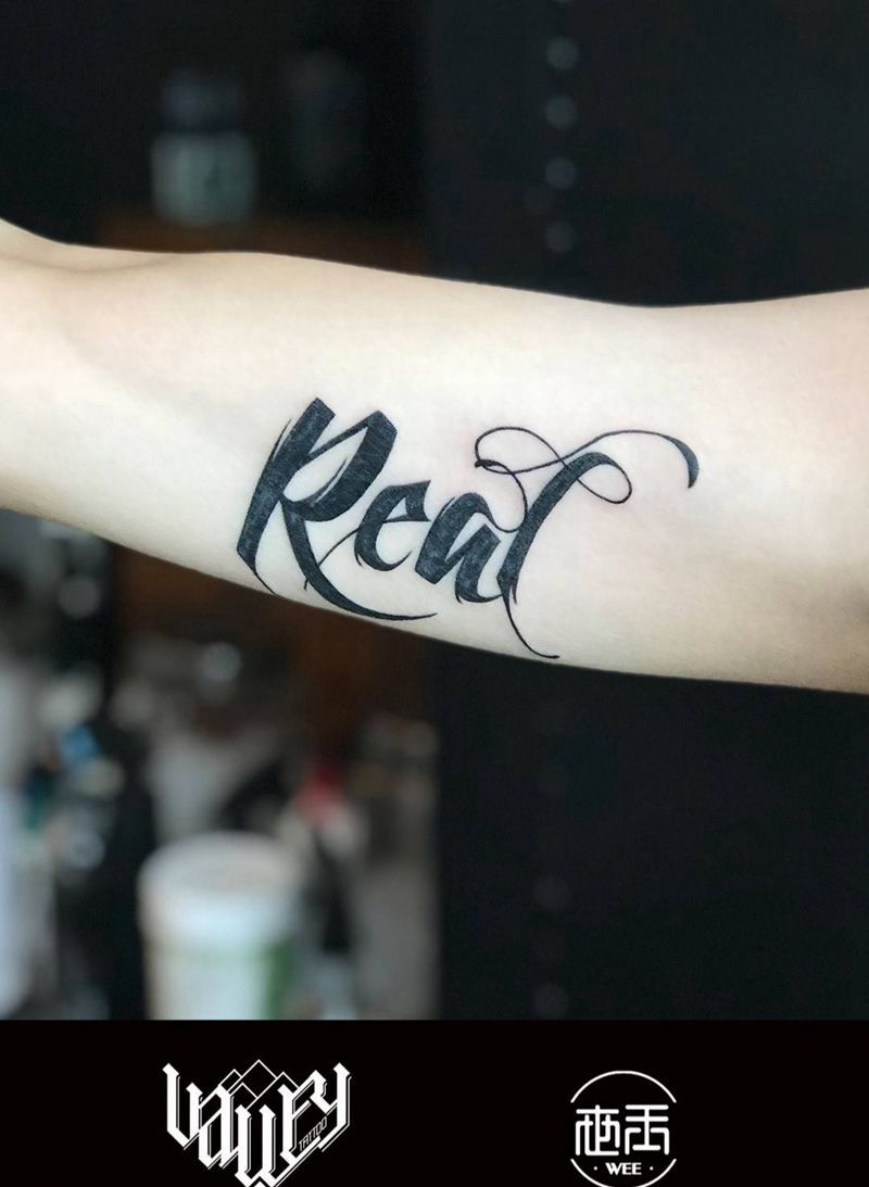 当前位置: 首页 >天津市纹身店-天津山谷刺青纹身图案>Keep real纹身图片_手臂花体字New School纹身图案