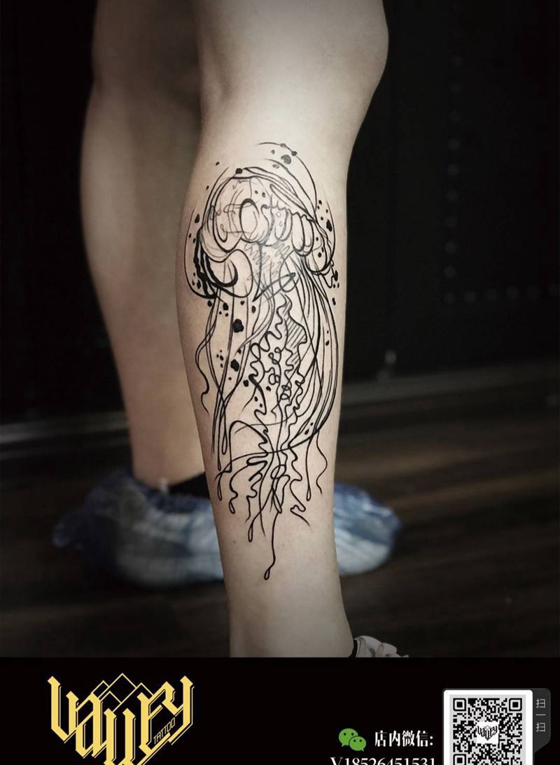 当前位置: 首页 >天津市纹身店-天津山谷刺青纹身图案>彩色水母 未完成纹身图片_腿部水彩New School纹身图案
