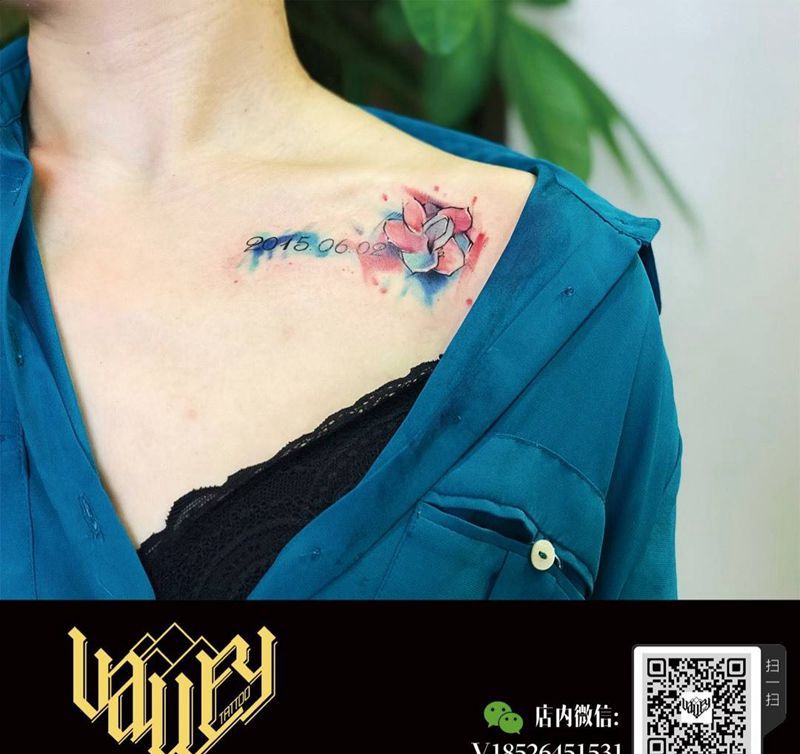 当前位置: 首页 >天津市纹身店-天津山谷刺青纹身图案>彩色泼墨茉莉纹身图片_颈部胸部水墨水彩纹身图案