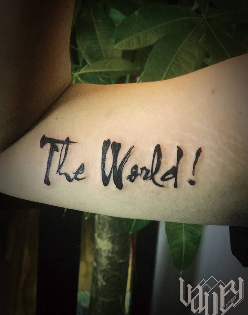 当前位置: 首页 >天津市纹身店-天津山谷刺青纹身图案>笔触 英文纹身图片_手臂New School纹身图案