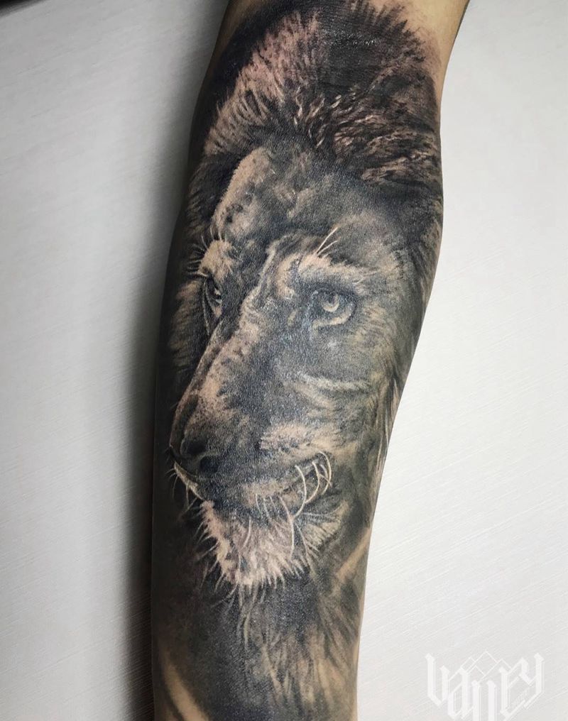 当前位置: 首页 >天津市纹身店-天津山谷刺青纹身图案>写实狮子纹身图片_手臂欧美写实纹身图案