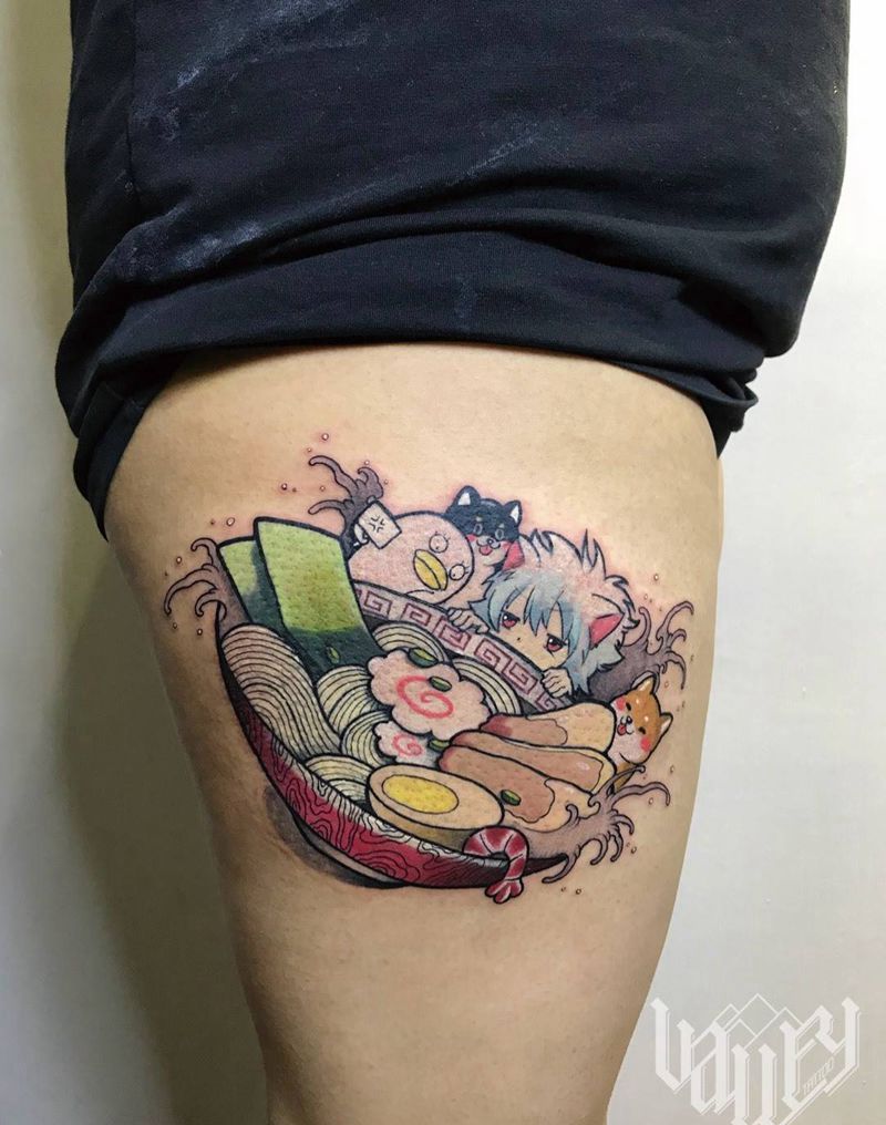 银魂柴犬拉面纹身图片_腿部New School纹身图案