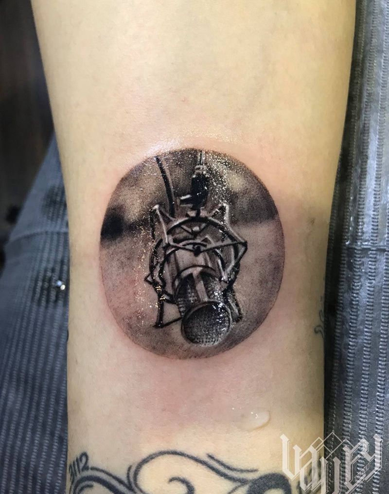 当前位置: 首页 >天津市纹身店-天津山谷刺青纹身图案>精致话筒纹身图片_手臂写实纹身图案