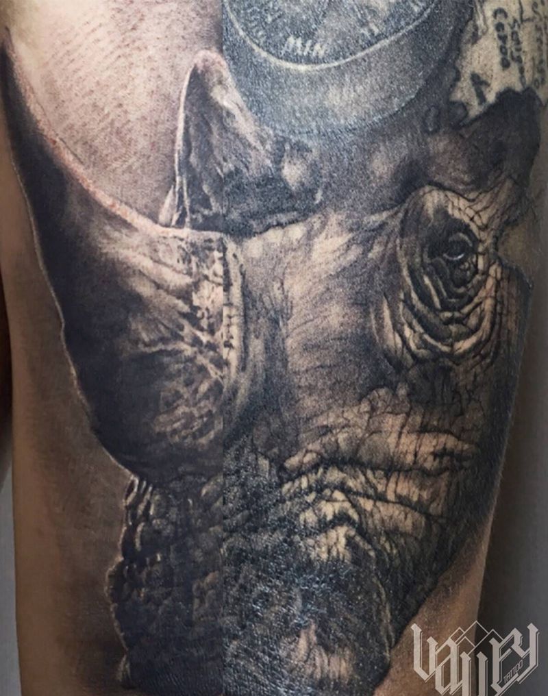 当前位置: 首页 >天津市纹身店-天津山谷刺青纹身图案>写实犀牛纹身图片_手臂欧美写实纹身图案
