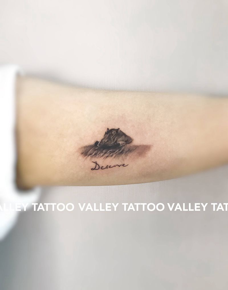 河马发呆图纹身图片_手臂欧美写实纹身图案