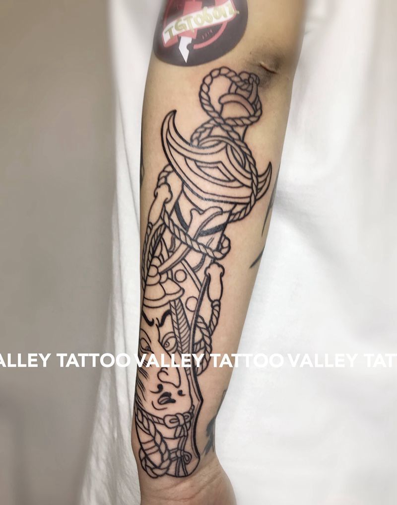 当前位置: 首页 >天津市纹身店-天津山谷刺青纹身图案>老日式匕首纹身图片_手臂老传统纹身图案