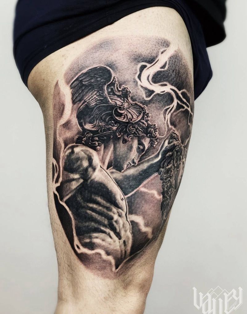 珀尔修斯纹身图片_腿部欧美写实纹身图案