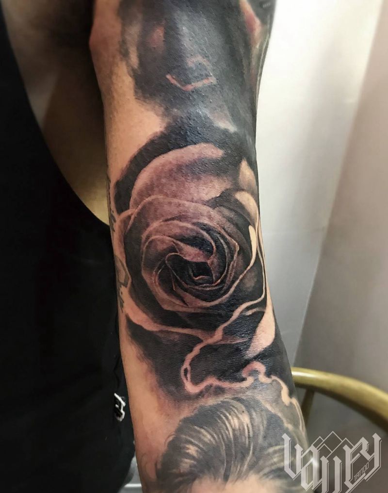 当前位置: 首页 >天津市纹身店-天津山谷刺青纹身图案>写实玫瑰纹身图片_手臂欧美写实纹身图案