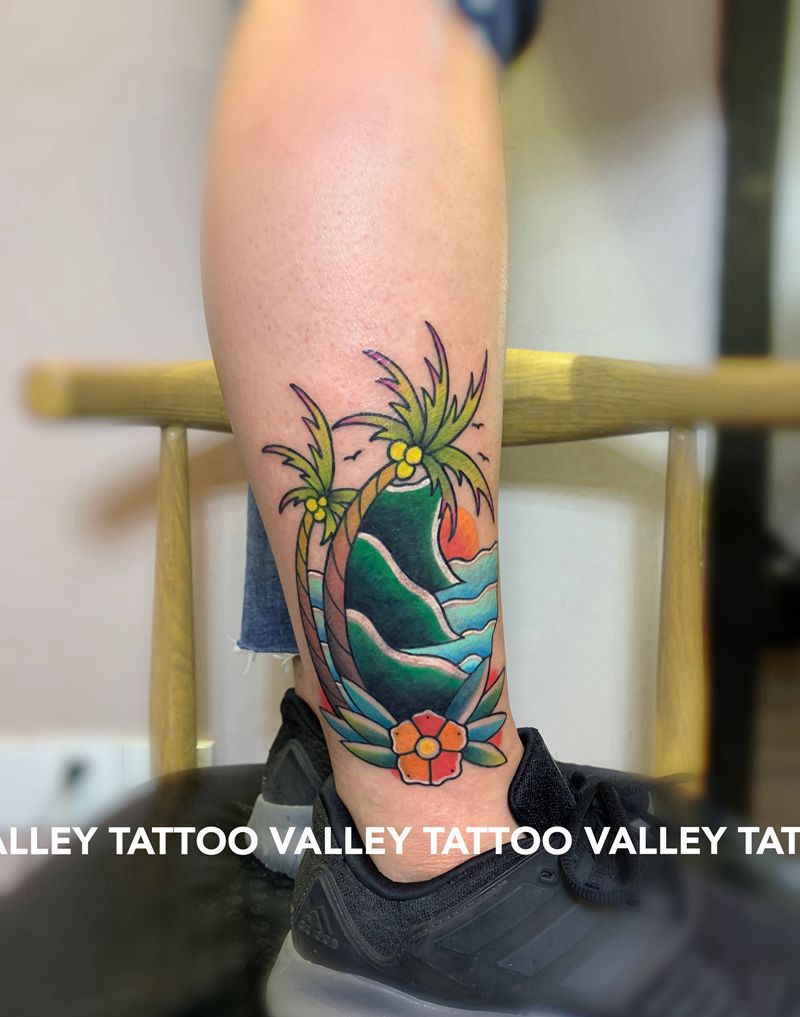 当前位置: 首页 >天津市纹身店-天津山谷刺青纹身图案>小腿遮盖纹身图片_腿部New School纹身图案