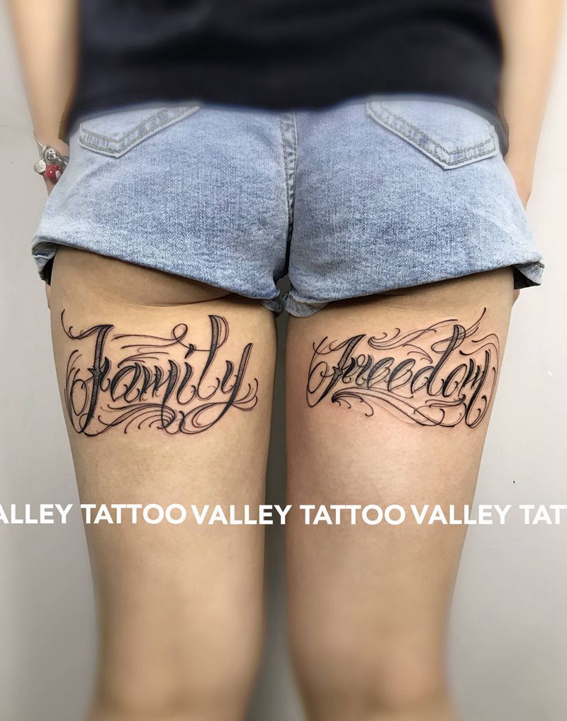 当前位置: 首页 >天津市纹身店-天津山谷刺青纹身图案>花体字纹身图片_腿部纹身图案