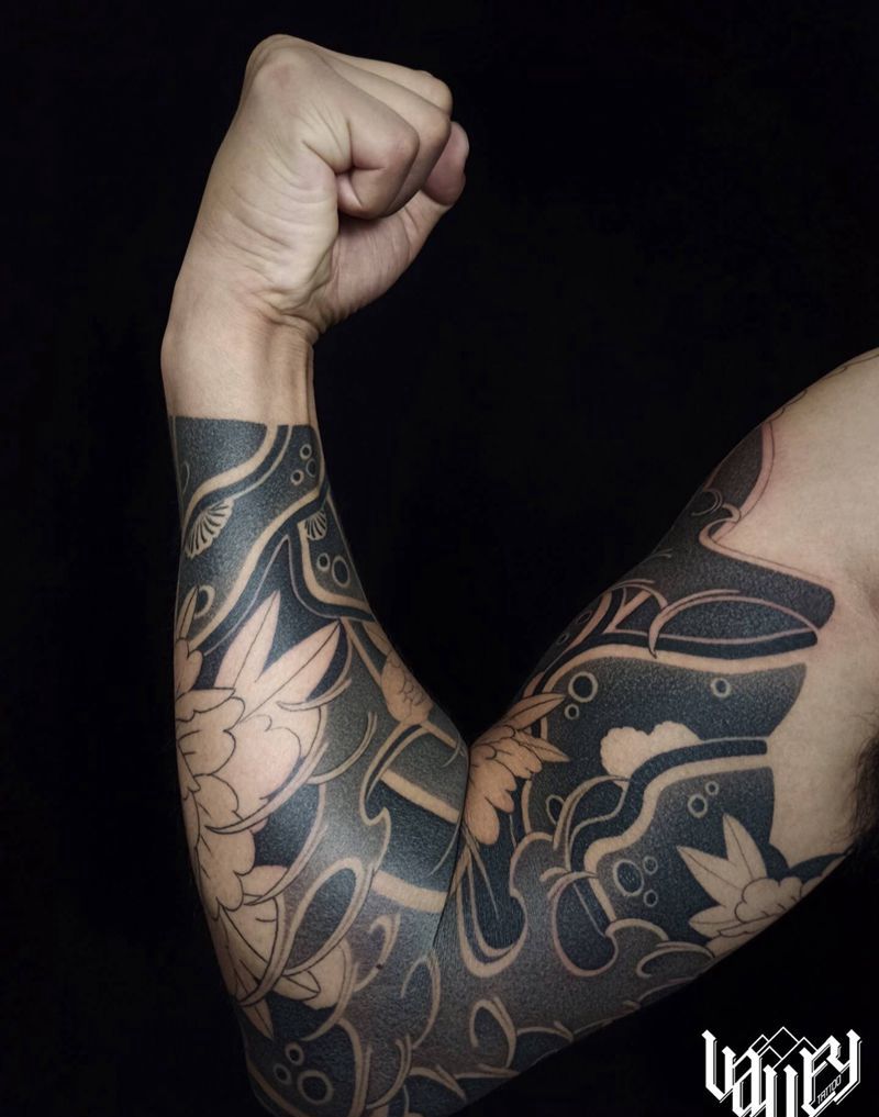 当前位置: 首页 >天津市纹身店-天津山谷刺青纹身图案>花臂未完成纹身图片_手臂纹身图案