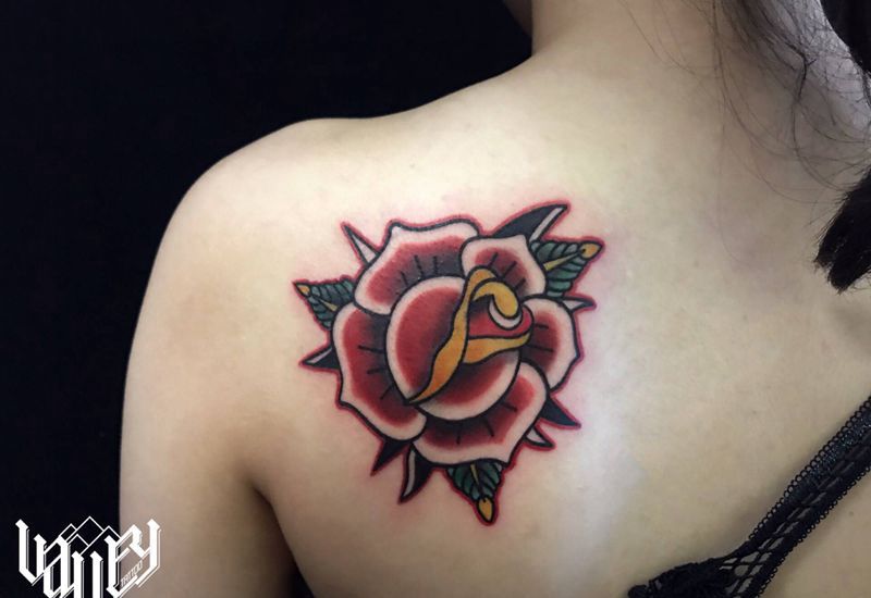 当前位置: 首页 >天津市纹身店-天津山谷刺青纹身图案>Oldschool玫瑰花纹身图片_背部纹身图案