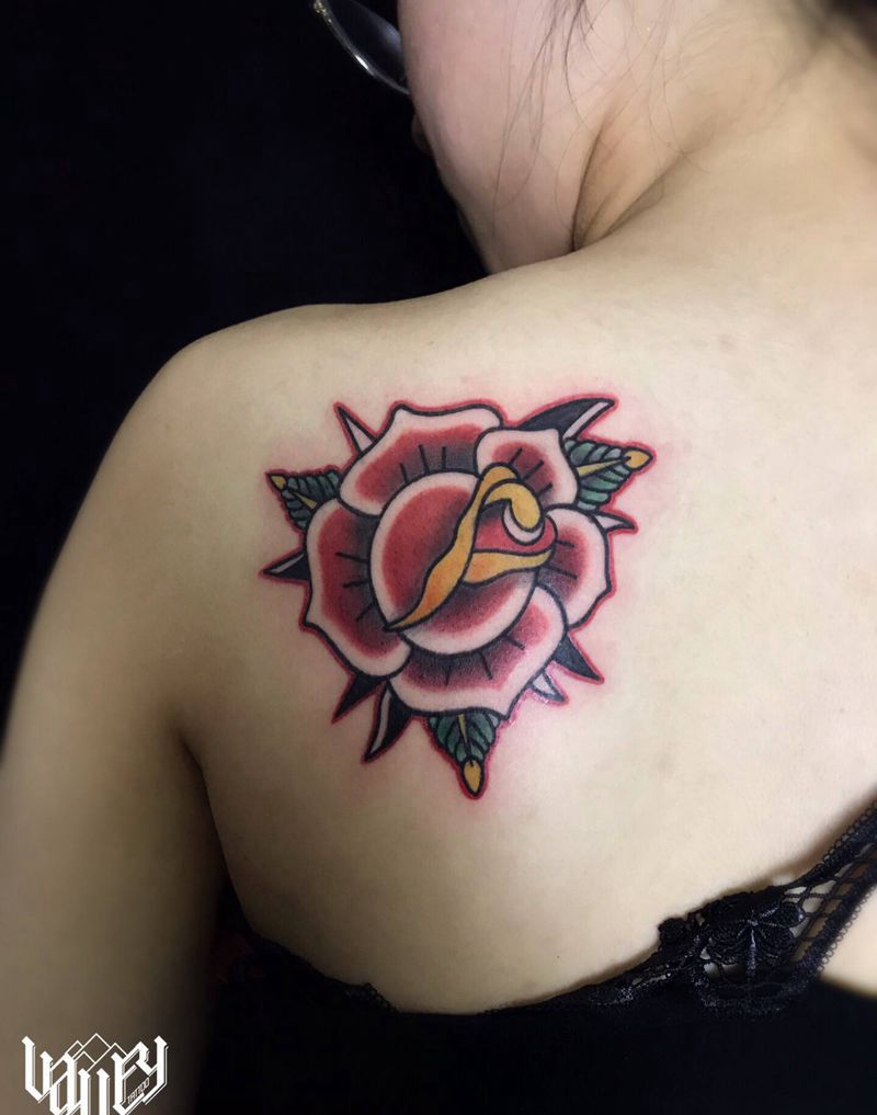 当前位置: 首页 >天津市纹身店-天津山谷刺青纹身图案>Oldschool玫瑰花纹身图片_背部纹身图案