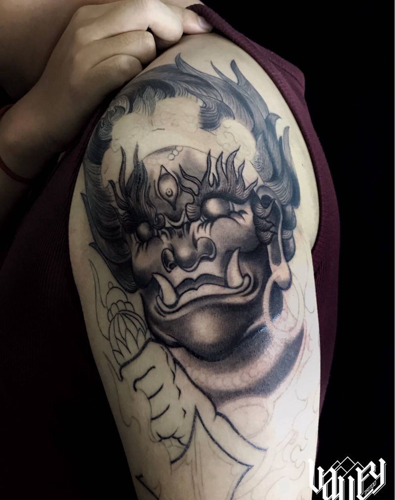 当前位置: 首页 >天津市纹身店-天津山谷刺青纹身图案>大黑天纹身图片_肩部手臂纹身图案