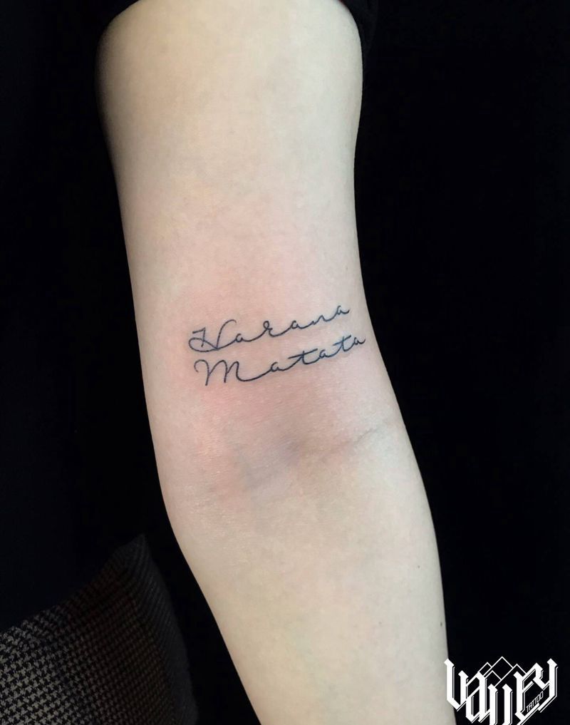 当前位置: 首页 >天津市纹身店-天津山谷刺青纹身图案>Hakuna matata纹身图片_手臂纹身图案