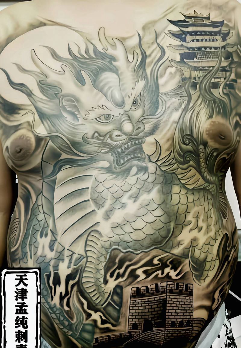• 黑灰满背纹身图案