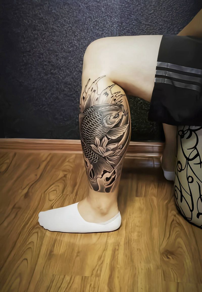 当前位置: 首页 >天津市纹身店-天津孟纯刺青纹身图案>小腿鱼纹身图片_腿部新传统纹身图案