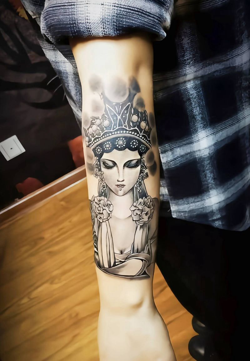 当前位置: 首页 >天津市纹身店-天津孟纯刺青纹身图案>小臂花旦纹身图片_手臂新传统纹身图案