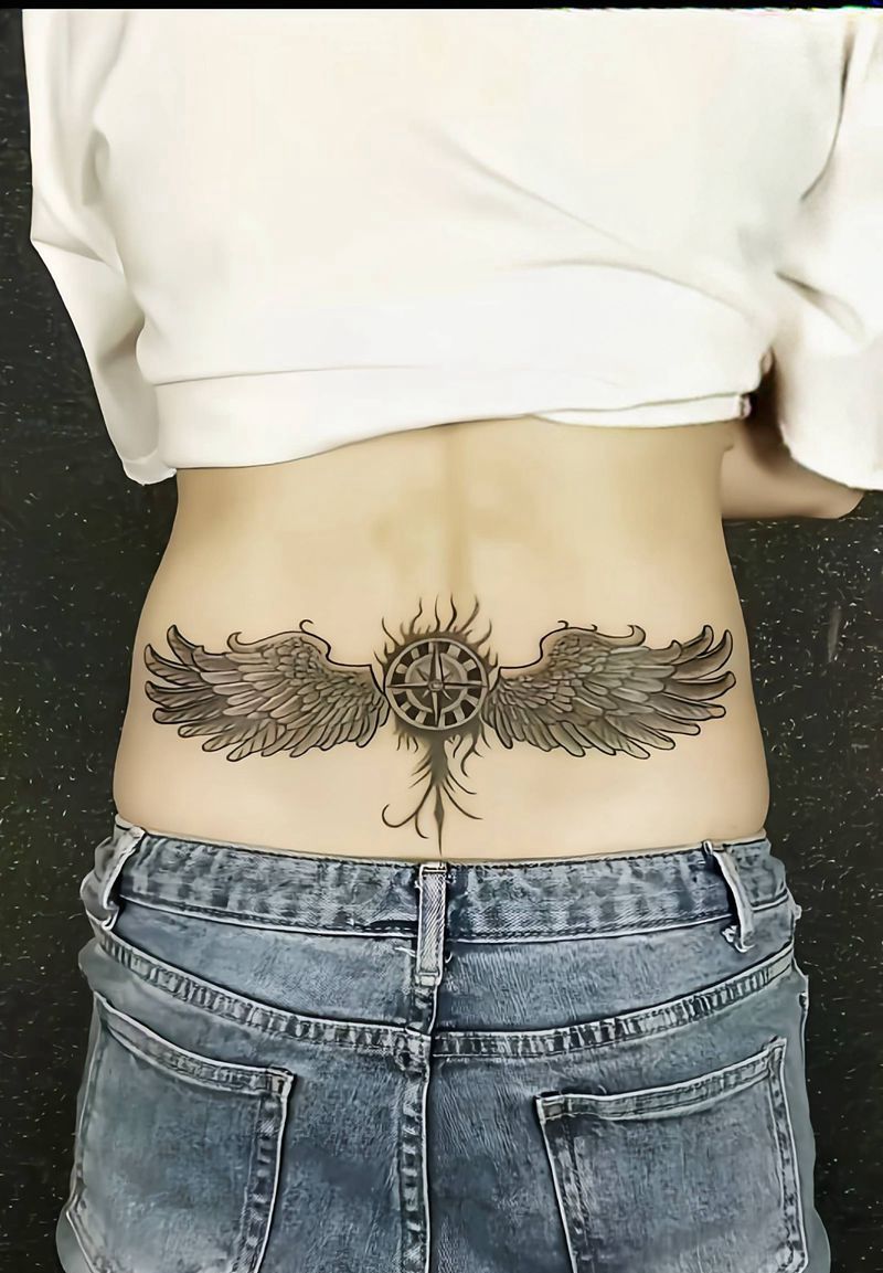 腰部翅膀纹身图片_腰部新传统纹身图案