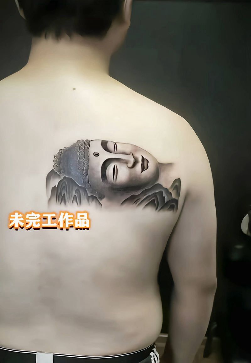 肩部佛像,未完工纹身图片_肩部新传统纹身图案