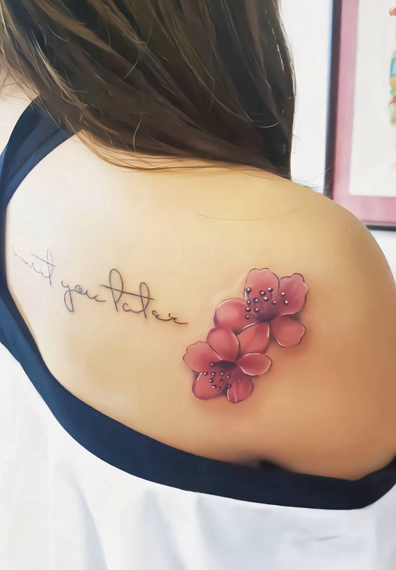 肩部小花一枚纹身图片_肩部欧美写实纹身图案