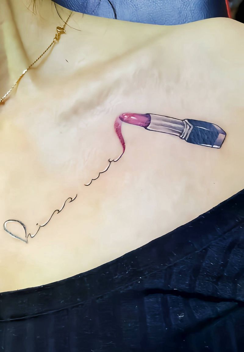 当前位置: 首页 >天津市纹身店-天津孟纯刺青纹身图案>锁骨口红纹身图片_肩部欧美写实纹身图案