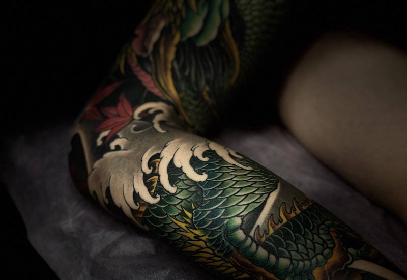 • T网红王老大花腿龙纹身图片_腿部新传统纹身图案
