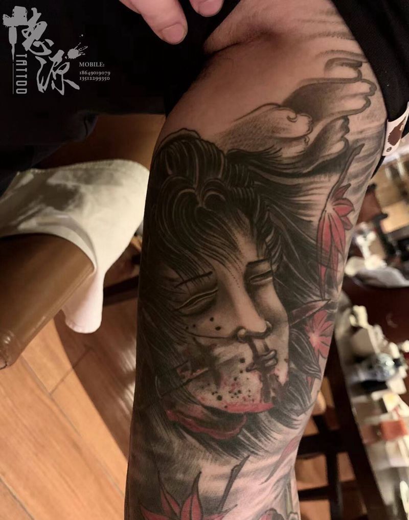 • T网红王老大花腿龙纹身图片_腿部新传统纹身图案