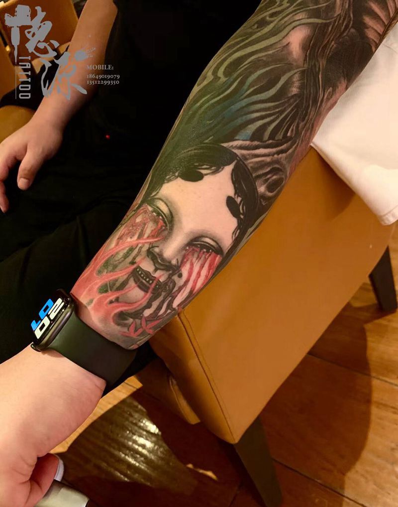 生首纹身图片_手臂纹身图案