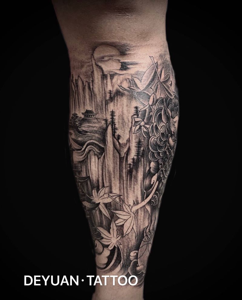 黑灰满背纹身图案