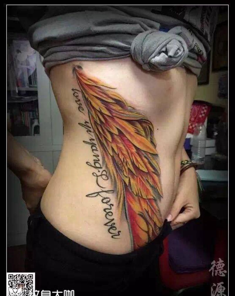 腰侧 羽毛纹身图片_