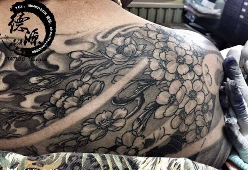 花纹身图片_背部纹身图案