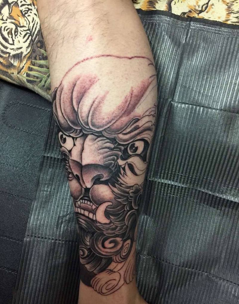 • T包小腿吹火男+阿多福纹身图片_腿部老传统新传统吹火男阿