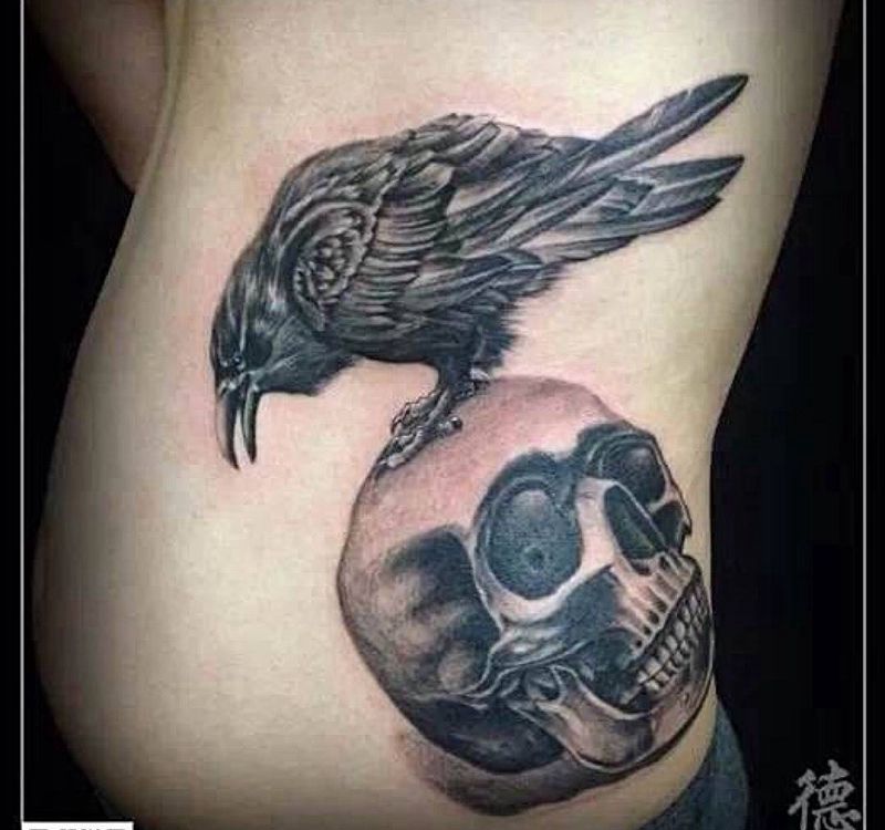 当前位置: 首页 >天津市纹身店-德源刺青纹身图案>乌鸦骷髅纹身图片_成品纹身图案