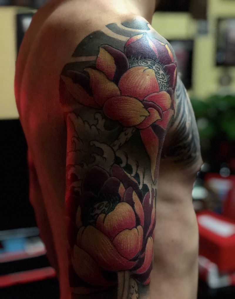一组15张莲花纹身手