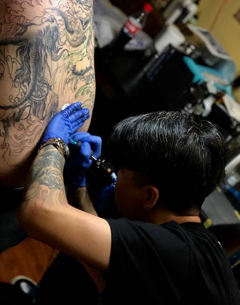 • T网红王老大花腿龙纹身图片_腿部新传统纹身图案