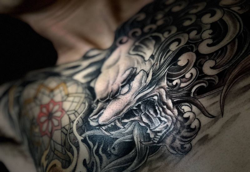 当前位置: 首页 >天津市纹身店-德源刺青纹身图案>唐狮花胸纹身图片_胸部新传统纹身图案