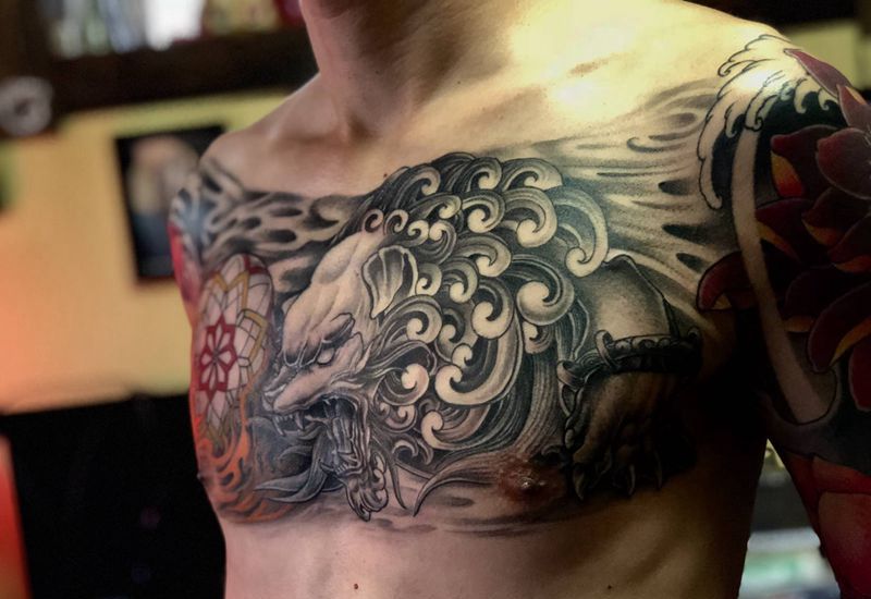 当前位置: 首页 >天津市纹身店-德源刺青纹身图案>唐狮花胸纹身图片_胸部新传统纹身图案