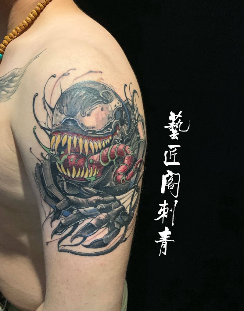当前位置: 首页 >天津市纹身店-兿匠阁刺青纹身图案>毒液纹身图片_手臂New School纹身图案