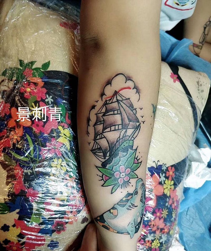 当前位置: 首页 >天津市纹身店-景刺青纹身店纹身图案>帆船鲨鱼纹身图片_手臂Old School纹身图案