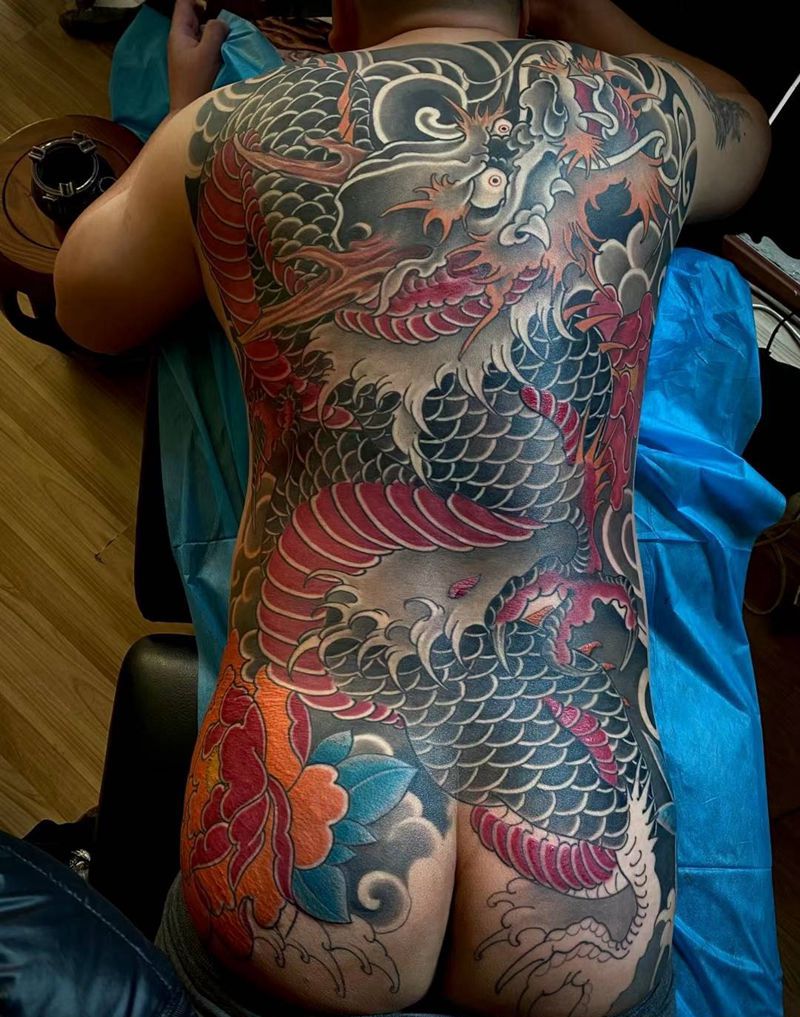 • T云龙九郎纹身图片_背部老传统云龙九郎纹身图案