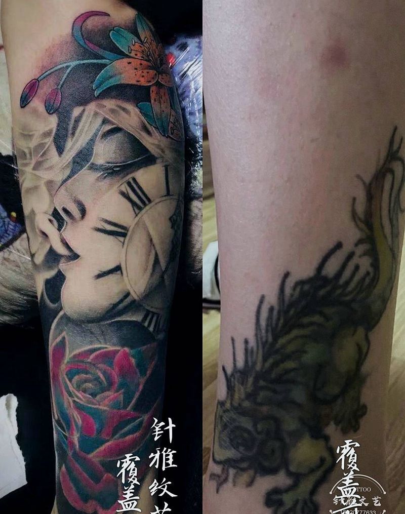 覆盖纹身图片_腿部欧美写实覆盖纹身图案