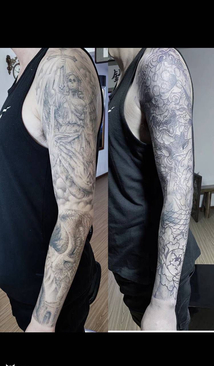 当前位置: 首页 >天津市纹身店-针雅TATTOO纹身图案>覆盖失败纹身进行中纹身图片_手臂新传统纹身图案