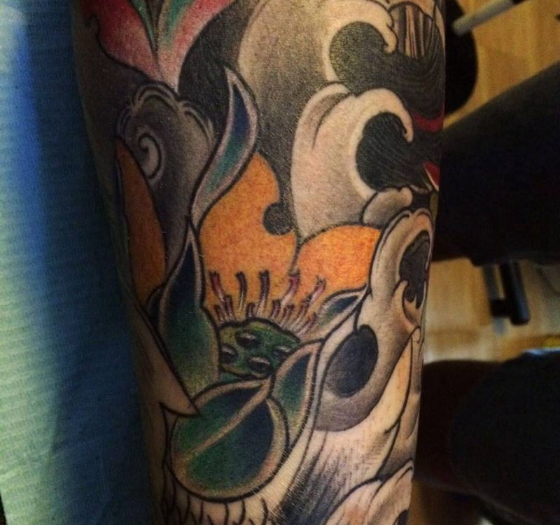 • T包小腿吹火男+阿多福纹身图片_腿部老传统新传统吹火男阿